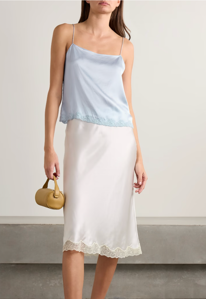 Kilari cotton-blend lace-trimmed silk-charmeuse camisole