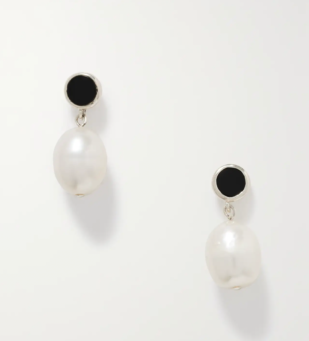+ NET SUSTAIN Neue Silver, pearl and Onyx Earrings