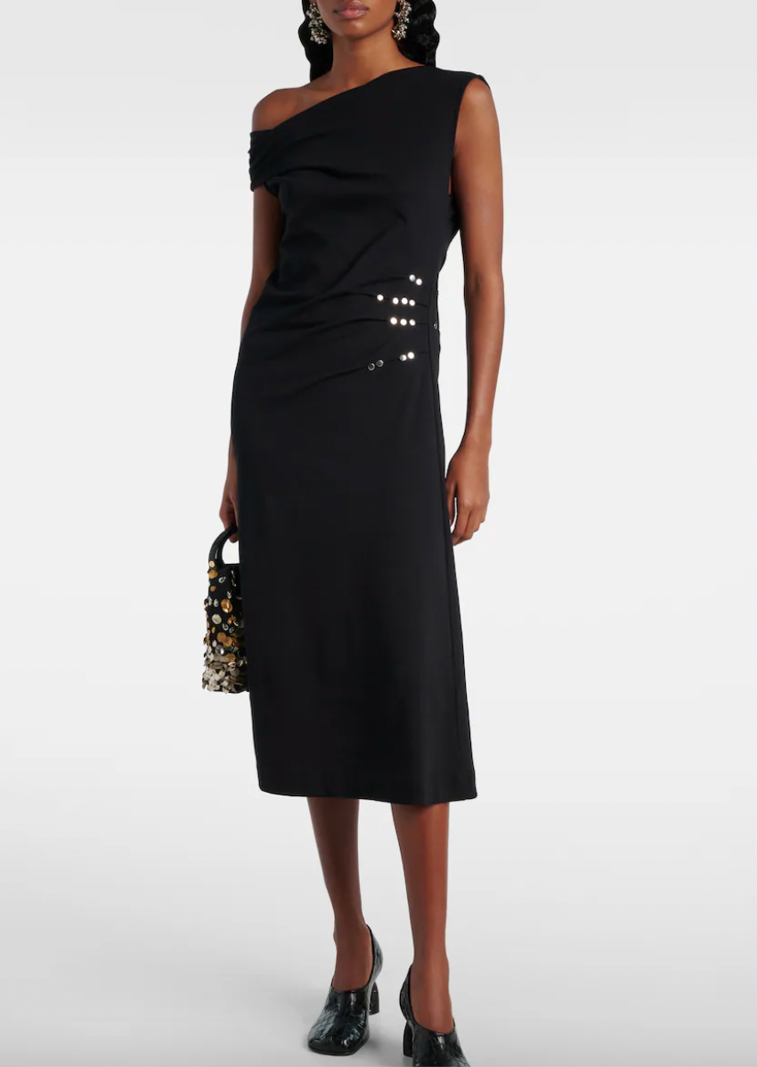 Gathered Embellished Jersey Midi Dress